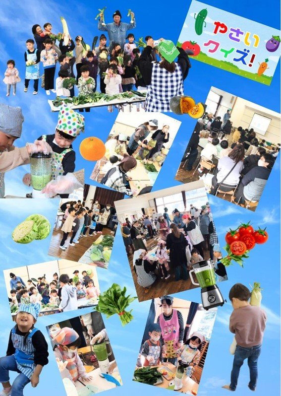 イベントでは、子どもたちが楽しみながら学べるよう「やさいクイズ」を行い、野菜についての知識を深めてもらいました。また、実際に野菜を使ったスムージー作りにも挑戦し、野菜に触れたり、味わったりする体験を通して、食への興味や関心を高める時間となりました。
