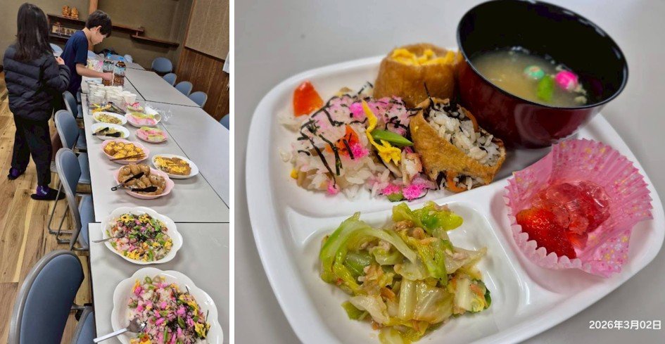 3月2日(月)には、翌日のひなまつりにちなんだ献立メニューで子どもたちと楽しい時間を過ごしました。